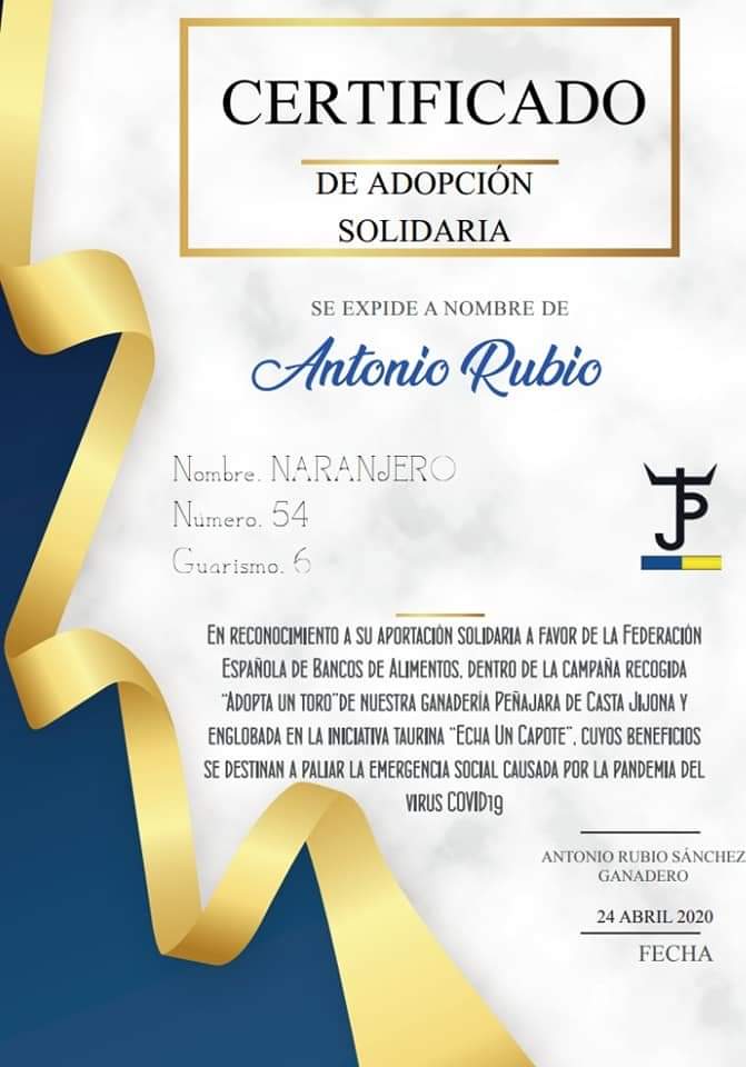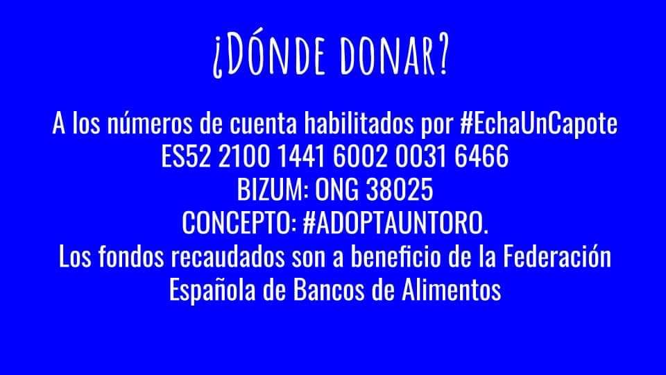 Con esta iniciativa Peñajara quiere ayudar directamente a la campaña que hace una semana promovieron cientos de toreros por las redes sociales #Echauncapote. En esta ocasión, #Adoptauntoro es el hastag para unir a todo el mundo taurino solidario.