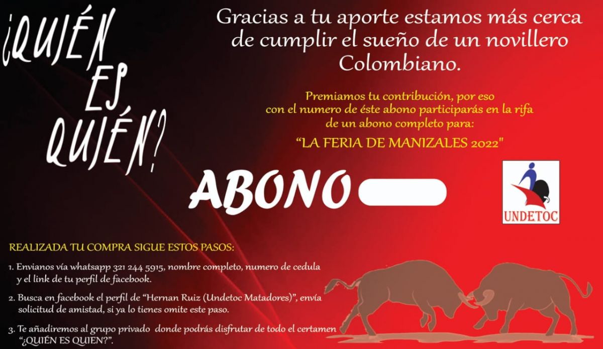 Este certamen será transmitido y tendrá un costo de cincuenta mil pesos Colombianos, los aficionados podrán ser parte de la elección del novillero triunfador.