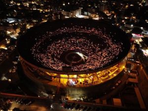 Por primera vez en la historia de la Plaza México, se realizó una “Corrida de las Luces”, antecediendo al festejo una procesión con la Virgen del Rosario.Para quienes son fieles de la Iglesia Católica, las fibras hilarantes movieron cada célula invandiendo de nostalgia y de fe, de paz y de emoción mientras en las alturas se escuchaban las coplas de la Salve Rociera, seguidas de una bendición elocuente que convirtieron en un momento el ruedo del coso en un templo devoto en donde la vida y la muerte hicieron un pacto.