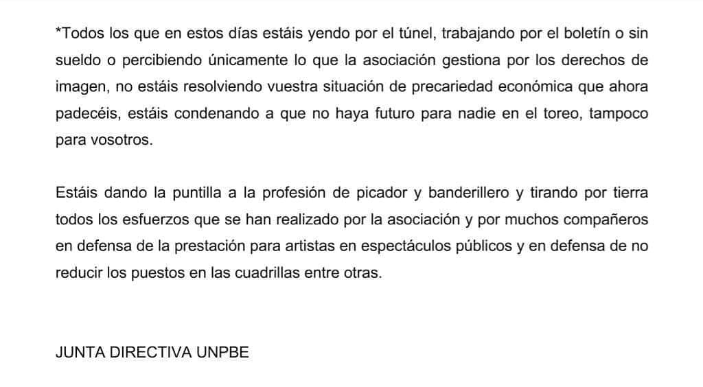 La Unión Nacional de Picadores y Banderillero de España –UNPBE- ha sacado un comunicado interno para avisar a todos aquellos “tuneleros” –Profesionales que cobran menos de los mínimos estipulados por convenio colectivo-. El comunicado ha sido rotundo y sin lugar a confusión.