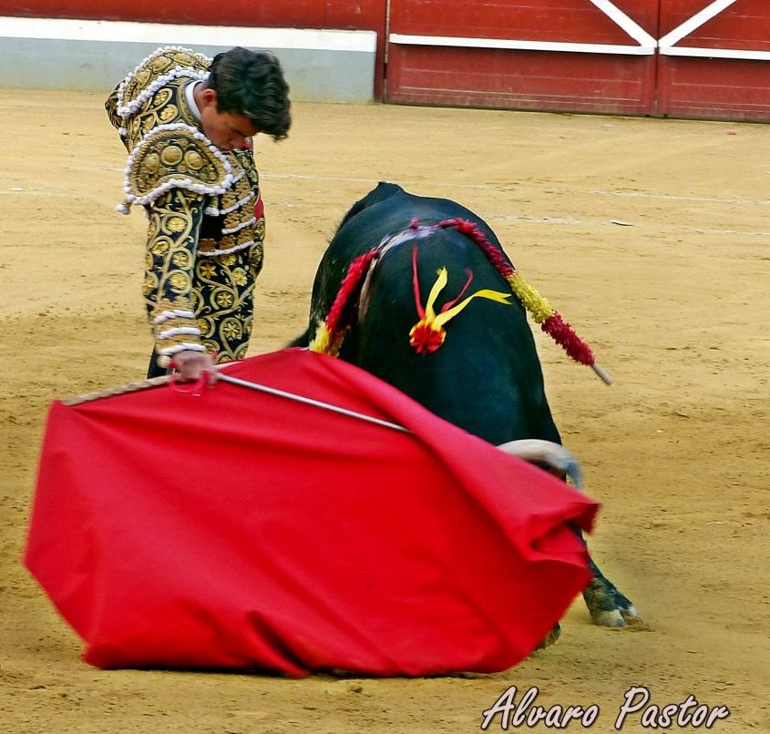 Una faena de más a menos donde cabe destacar un par de tandas por la mano derecha y la voluntad y ganas de triunfo del novillero. Estocada caída oreja denegada