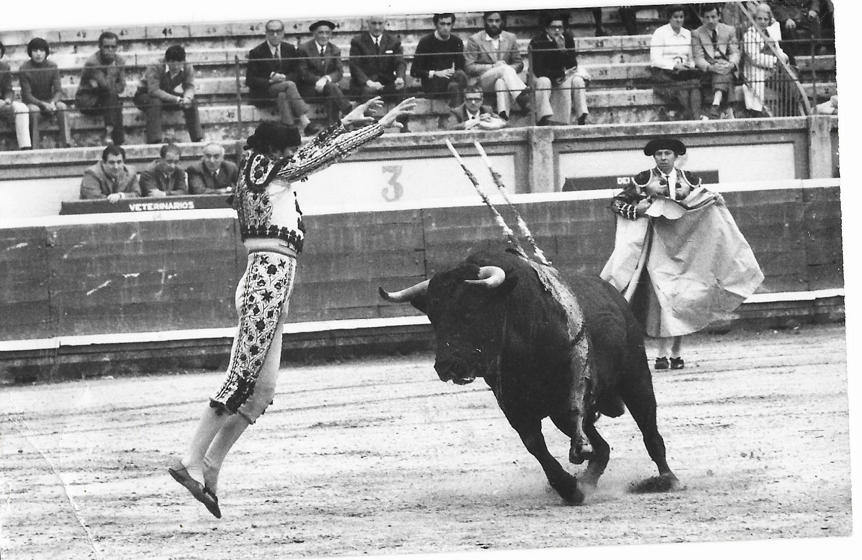 Los banderilleros, rehileteros, subalternos, peones de brega o de confianza…son tres en cada cuadrilla. Al primer toro de su matador le coloca un peón el primero y tercer par. Lidia el toro su compañero y el “tercero” de la cuadrilla coloca el segundo par a los dos toros y apuntilla al astado, cuando dobla, para dar paso a las mulillas. En otros tiempos solía haber un puntillero o cachetero “oficial” a cargo de la plaza. El último en Logroño fue Espiga y de mis años por Sevilla recuerdo a Pepe “Lebrija” que era una institución y hasta un día dio vuelta al ruedo en La Maestranza tras apuntillar un toro devuelto a El Paula. En la familia, oriundos de Lebrija, hubo y hay novilleros, banderilleros, más cacheteros y a un hermano de Pepe, novillero, lo mató un novillo en alguna población sevillana.