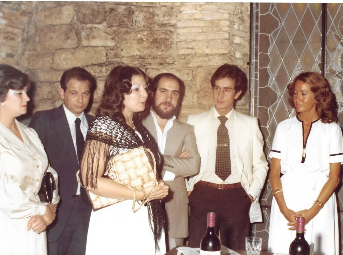 PIE DE FOTO: Años 70 en Logroño. Muriel Feiner presenta una publicación taurina en presencia de Julio Robles, el pintor Indalecio Sobrino y la esposa del Alcalde de Logroño.