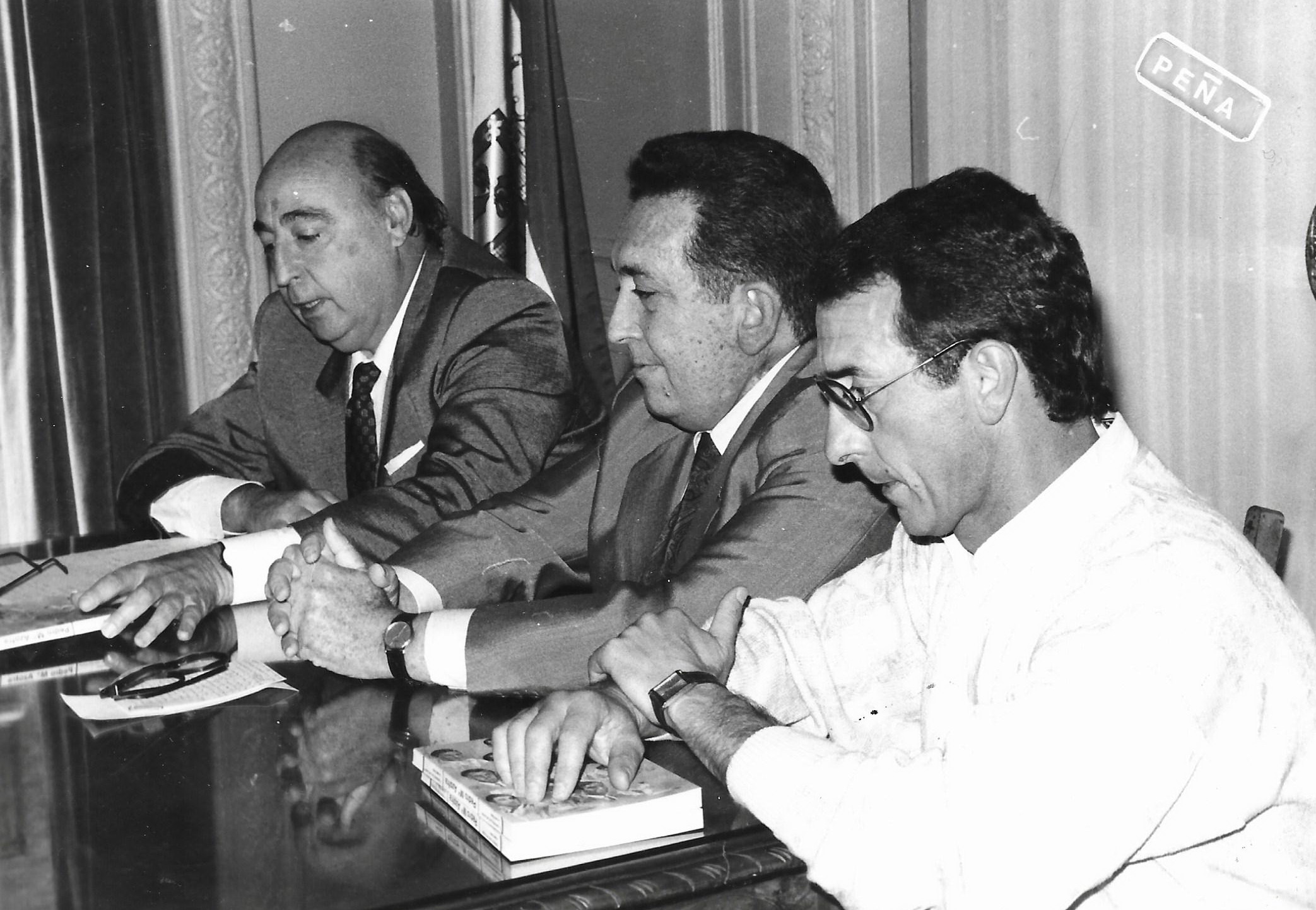 -Ignacio Aguirre y Eugenio Mazón presentando “Toreros que aplaudió la mayoría”. CRM-1986.