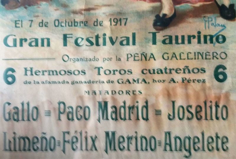 Fragmento del Cartel histórico de la plaza de toros de Valencia el 17 de Octubre de 1912 en que figuran los tres hermanos con el apodo de Gallito I; Gallito II y Gallito III.