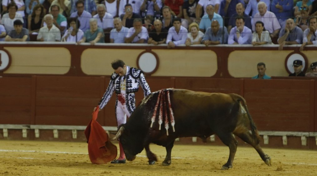 Se desmonteraba “Suso” de la cuadrilla de José María Manzanares y hacía sonar la banda de música por dos pares imponentes al tercer juampedro, de nombre Jironado. Con la franela en la derecha comenzaba una faena José María Manzanares, sometiendo al astado por bajo y obligándolo a ir lejos en cada muletazo, hilvanó tandas en redondo, con ese torero suyo tan característico y estético, por el pitón izquierdo el juampedro intentaba hacer presa y “se colaba” en cada uno de los pases que intentaba el Torero alicantino, llevando la faena a las cotas más altas de emoción. Estuvo el diestro muy enrazado y pasaportó de gran estocada. Una oreja y ovación al toro en el arrastre.