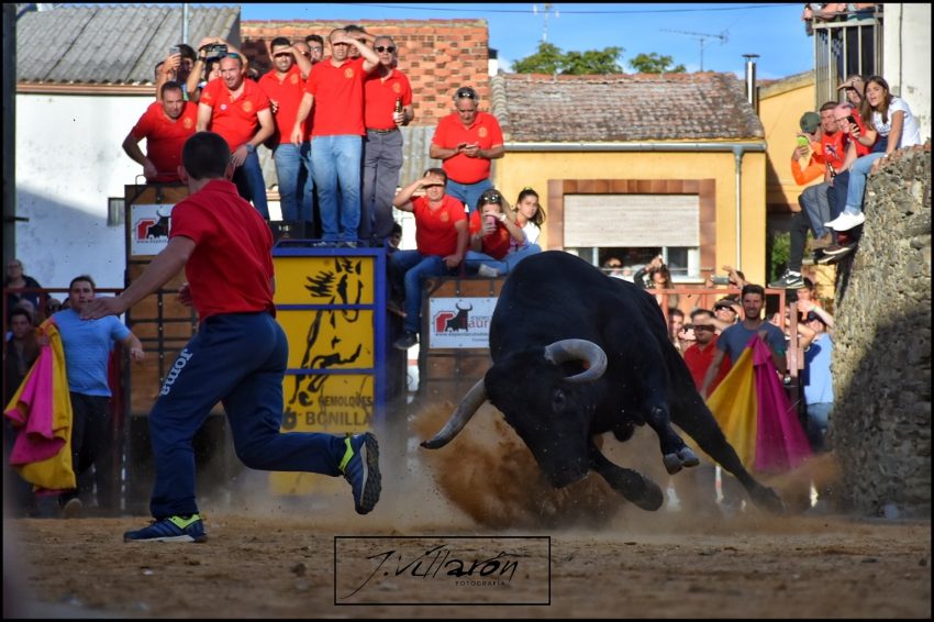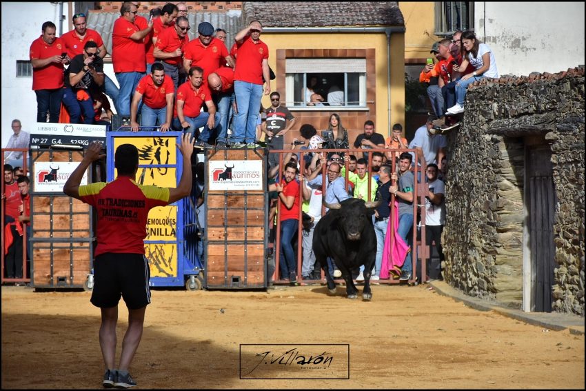 | Tarde espectación la vivida el sábado en Alba de Tormes (Salamanca). La Asociación Taurina 15 de Octubre soltaba sus tres toros de cajón por las calles de la Villa Ducal en las fiestas en honor a Santa Teresa. Gañalito de Valdefresno, Pañuelo de Herederos de Miguel Zaballos y Liebrito de Maria Cascón fueron los encargados de dar emoción en la calle y en la capea posterior en su bonita y coqueta plaza cubierta.