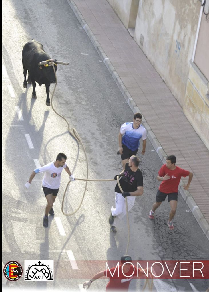 En definitiva, Monóvar es una ciudad con arraigo y una amplia historia de tradición taurina, así como sus pedanías como son La Romaneta, Casas del Señor y Chinorlet, que también realizan festejos en el mes de Agosto durante sus fiestas. La principal modalidad siempre ha sido la suelta de vaquillas, aunque desde el año 2016 que se creó la Asociación Taurina “El Bouet de Monover”, actualmente con 65 socios, se ha podido recuperar la antigua tradición de devolver el toro en cuerda a sus calles, trasladándolo cada año a diversos barrios donde antaño eran guiadas las reses con sus respectivas maromas, siendo la única población de la provincia de Alicante que realiza ésta modalidad, así como la entrada de vacas o encierros, todo organizado tradicionalmente por el Ayuntamiento y respaldado y asesorado por los integrantes de su “Asociación”, que luchan por mantener la tradición taurina monovera.