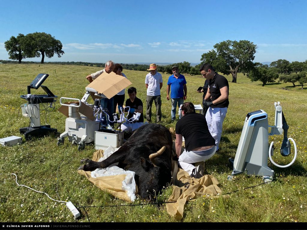 🏥 La Clinica Javier Alfonso lleva más de 20 años trabajando una fisioterapia científica de alto rendimiento, basada en la formación continua apoyada de la aparatología médica más moderna y avanzada del sector. Y 20.000 pacientes después, ha llegado a sus manos ‘Campanero’, un semental de encaste Santa Coloma de la ganadería de lidia de José Luís Bertol, que tras una brutal pelea en el campo, se lesionó gravemente la pata trasera.