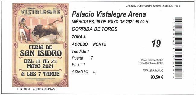 Es cierto que, este amigo que me ha mostrado la entrada por la que pagó semejante disparate, sigue llorando de forma desconsolada al ver que lo que pagó, nada tenía que ver con el bodrio que se le ofreció. Eso sí, me ha jurado y perjurado que jamás volverá a dicha plaza. Y es lógico porque un hombre como él, acostumbrado a Las Ventas, lo de Vistalegre le ha parecido un atraco consentido.