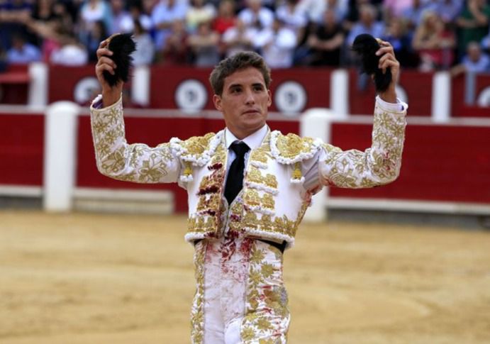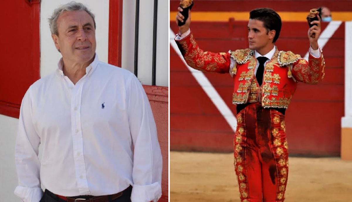 Vemos a Diego Carretero en el momento de su alternativa triunfal en Alicante, una imagen de su éxito y junto al que ahora rige sus destinos como apoderado, el genial Joxin Iriarte.