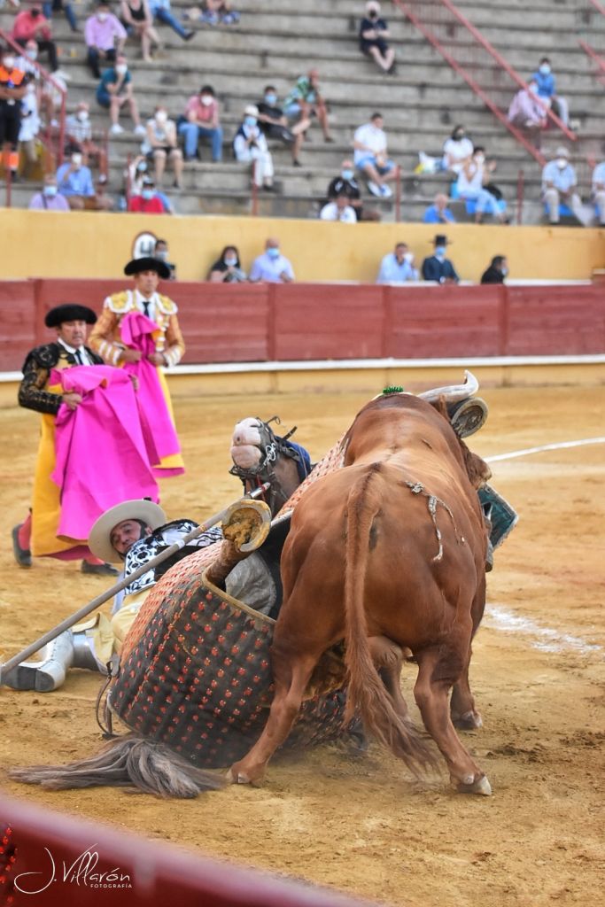 Calita sorprendió por las ganas y su buen concepto, en su primero un animal con genio estuvo bien quizás un poco acelerado costándole dos sustos sin consecuencias por esas ganas de triunfar, y en su segundo dejó lo mejor de su tarde con un toro que se vencía por el derecho basó su faena por el izquierdo logrando buenos muletazos «jugándosela» y cargando bien la suerte, mató de estocada algo desprendida y oreja merecida para él.