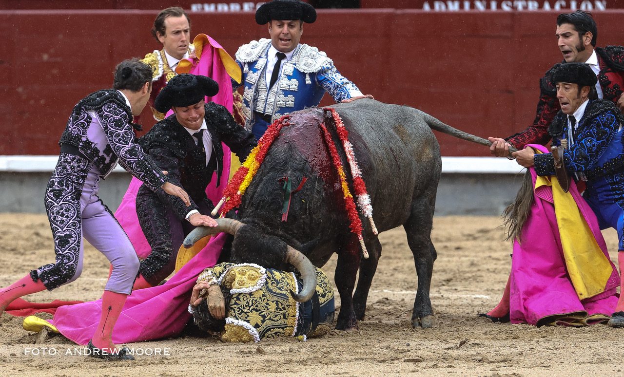 José Garrido no ha tenido suerte alguna puesto que, nada más iniciar la faena de su primer enemigo ha sido cogido con saña porque este tipo de toros son los que suelen coger a los toreros. La cogida ha sido brutal mientras lo tenía en el suelo pero, cuando estaba a merced del toro y los pitones buscaban su cuerpo, Garrido ya estaba herido. Ha sido operado por el doctor García Padrós de una cornada en el muslo de carácter grave.