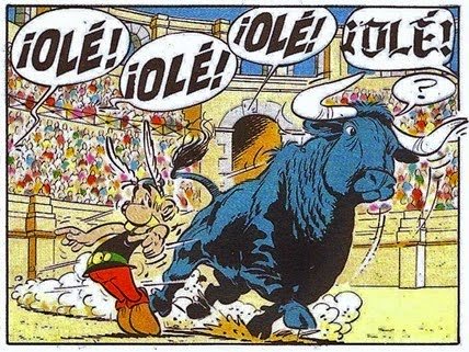 Albert Uderzo hizo muchos guiños a la tauromaquia en sus emblemáticos comics, e imprimió con su personalidad imágenes sobre la corrida, e incluso el mundo del arte a cuerpo limpio, algo curioso, cuanto menos, y que seguramente imprimió de amor por la fiesta algún lector.