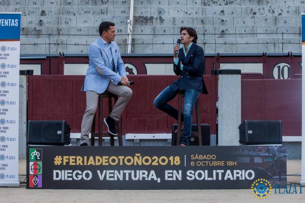 El ruedo de la Plaza de Toros de Las Ventas se llenó de aficionados en un encuentro con el rejoneador Diego Ventura. El éxito de convocatoria del hispano-luso fue abrumador y atendió a todos los aficionados que se acercaron para conocer más de cerca a su ídolo y a parte de la cuadra que le acompañará en su festejo en solitario el próximo 6 de octubre en la Feria de Otoño.