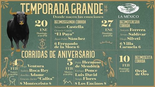Domingo 27. Toros de Villa Carmela para Antonio Ferrera, Arturo Saldívar y Diego Silveti.