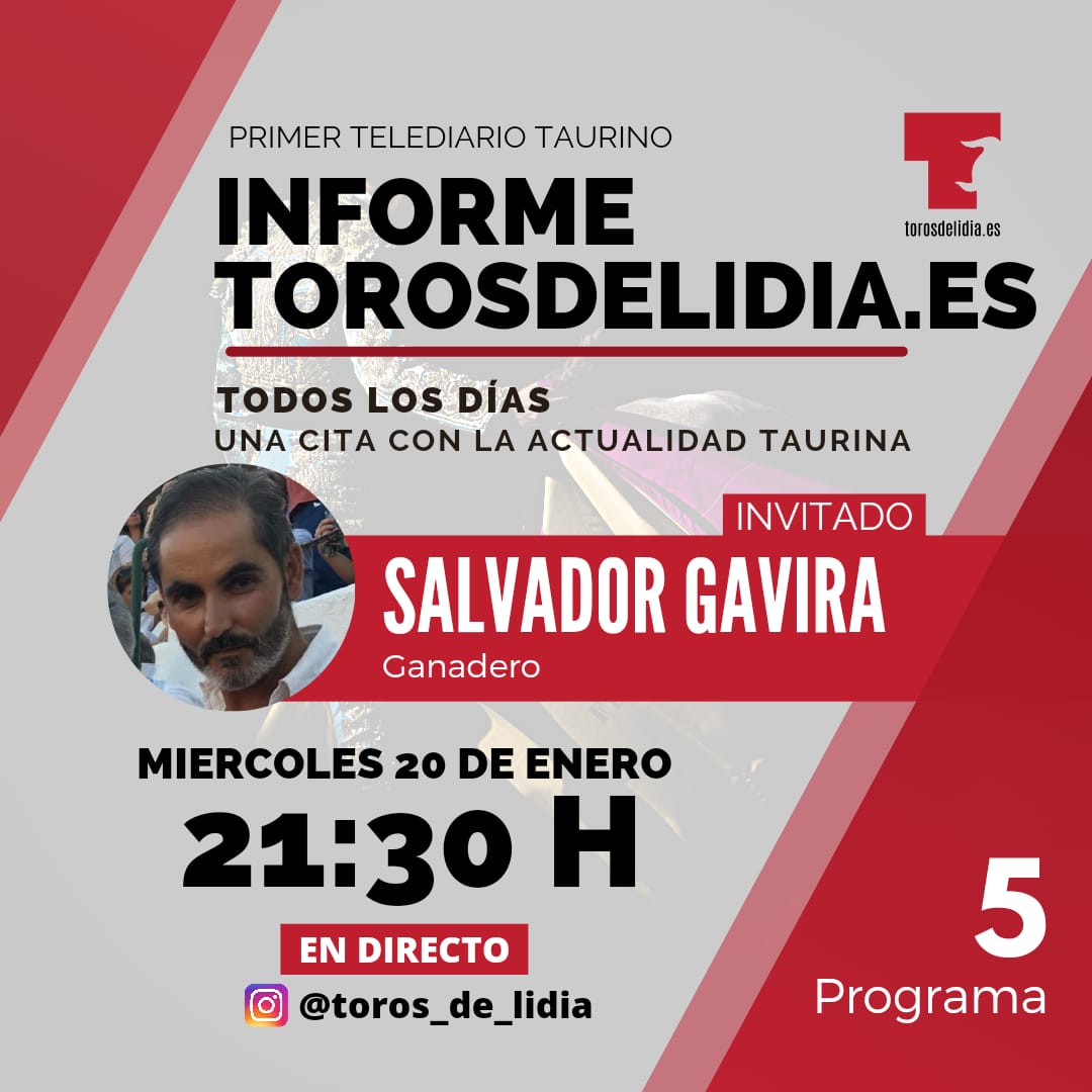 Hoy en nuestro espacio de informe taurino, tendremos como invitado especial al ganadero Salvador Gavira, con el que hablaremos sobre el estado de la fiesta y la actualidad ganadera.