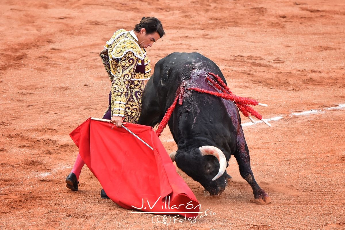 Lo brinda al público para iniciar su faena pegado a las tablas y donde ya el astado comienza a quedarse corto en la muleta, es entonces cuando utiliza una serie de trincherazos para sacarlo a los medios, logrando así con la mano derecha unos pases de calidad torera y consiguiendo ligar los muletazos debido a la humillación del toro, lástima el poco recorrido que tenía quedándose un poco corto pero sin molestar al torero.