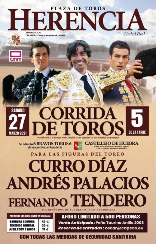 Casi doblando la hoja del calendario, el 27 harán el paseíllo en Herencia Curro Díaz, Andrés Palacios y Fernando Tendero, con toros de Castillejo de Huebra, una interesante apuesta con el encaste Murube para toreo a pie y una terna que cuenta con el enorme atractivo del diestro linarense, junto con los aspirantes a ser reconocidos como toreros de prestigio, y llegará abril con ese sonoro mano a mano que se ha anunciado para Villoria, el primero de los hermanos Javier y Damián Castaño, también ante reses de Castillejo de Huebra. Abril también será Torija y otras plazas con categoría administrativa de tercera, pero con importancia de primera en estos momentos cruciales.