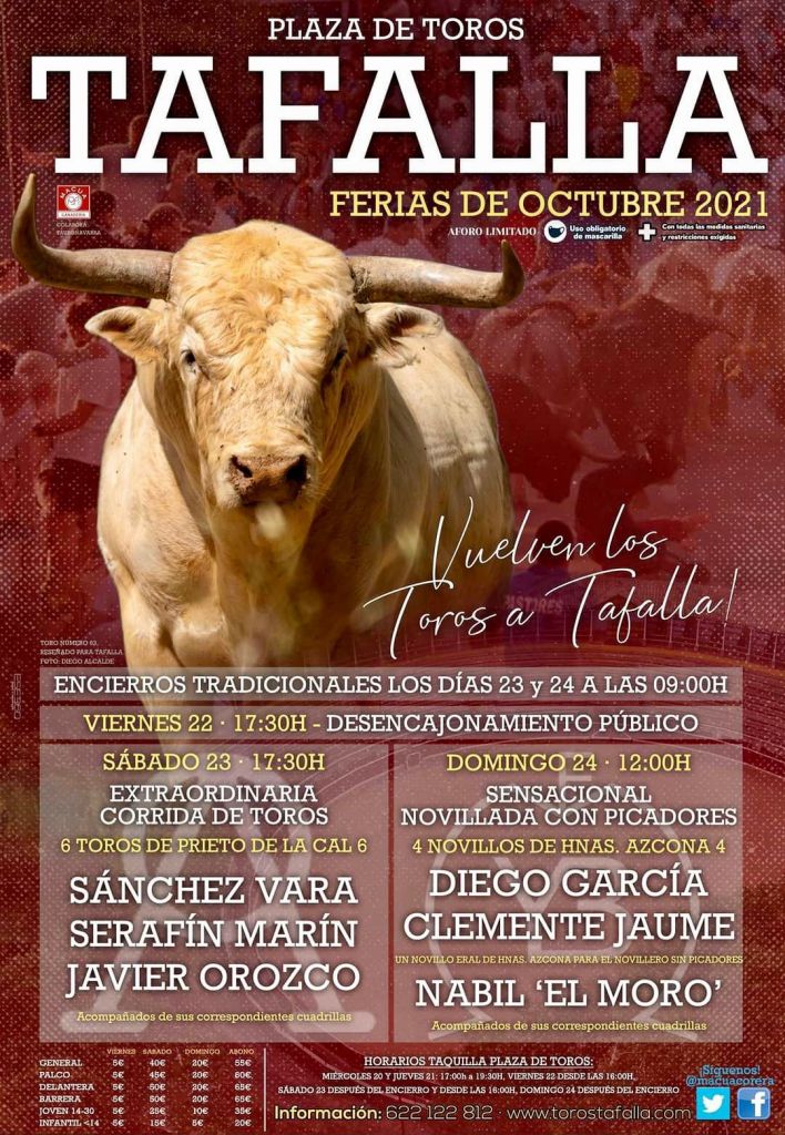 Gran espectación en Tafalla tras dos años consecutivos sin espectáculos taurinos en toda la comunidad incluida la suspensión de la Feria taurina más importante de la Comunidad Foral de Navarra y una de las más importantes de España, San Fermín . En esta localidad se reanuda la actividad taurina tras poco más de estos dos años de parón. La empresa Macua Corera, ha tomado la iniciativa de organizar una mini feria para los días 23 y 24 de Octubre, el cartel ha sido presentado en la mañana del miércoles 13 y está compuesto por una corrida de toros y una novillada con picadores.