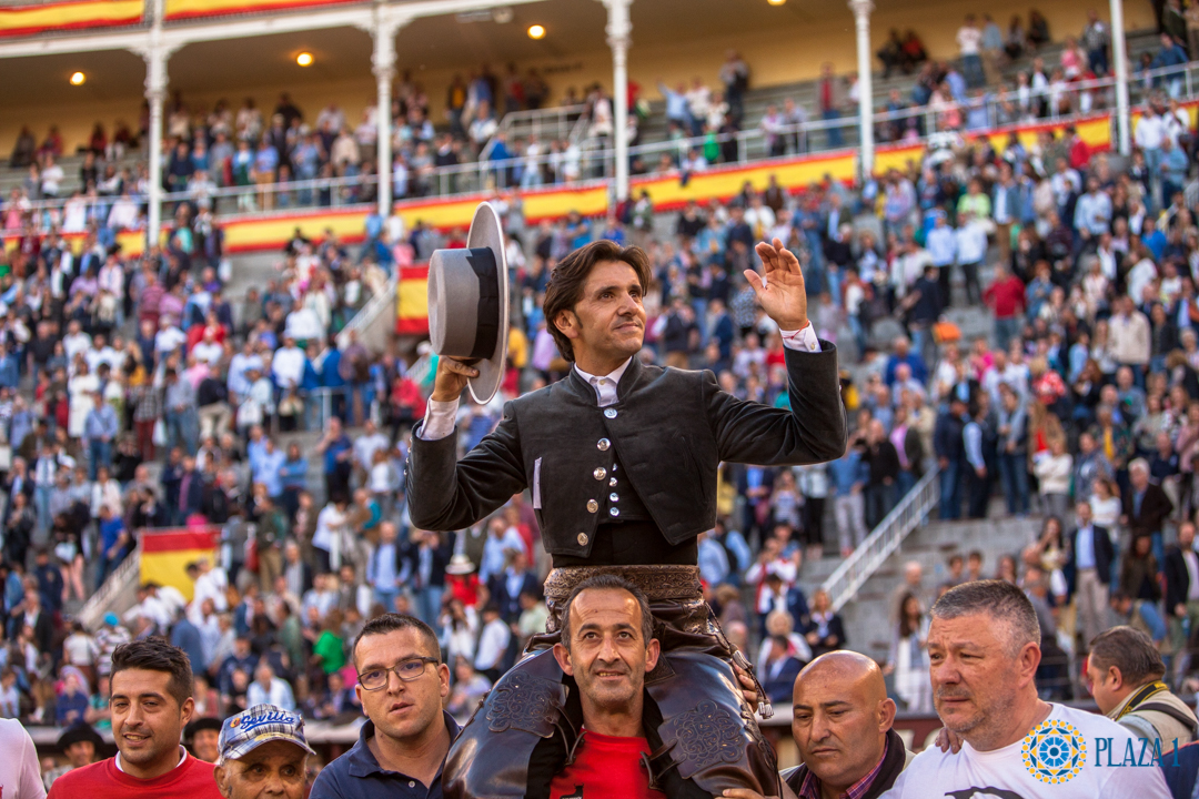 Diego Ventura se sobrepuso a una tarde en la que los toros de San Pelayo, uno de los hierros de El Capea, no ayudaron a los rejoneadores. Ante el primero fue Ventura a lomos de Nazarí quien lo movió a dos pistas y cerrar con Remate y tres cortas. Oreja tras rejón entero. El tercero de la tarde fue un parado ante el que le tuvo que hacer todo y no le dio el movimiento necesario para lucir su cuadra. Fue silenciado tras fallar con los aceros. Los momentos más intensos de la tarde llegaron ante el quinto. Fue un toro que sin dar las embestidas necesarias para el disfrute del público, a Ventura le sirvió para lidiar y levantar a los tendidos con Nazarí y arriesgar y arrimarse con Bombón. Oreja tras estocada fulminante y ello suponía la decimoquinta Puerta Grande para Diego Ventura que volverá el próximo 9 de junio.
