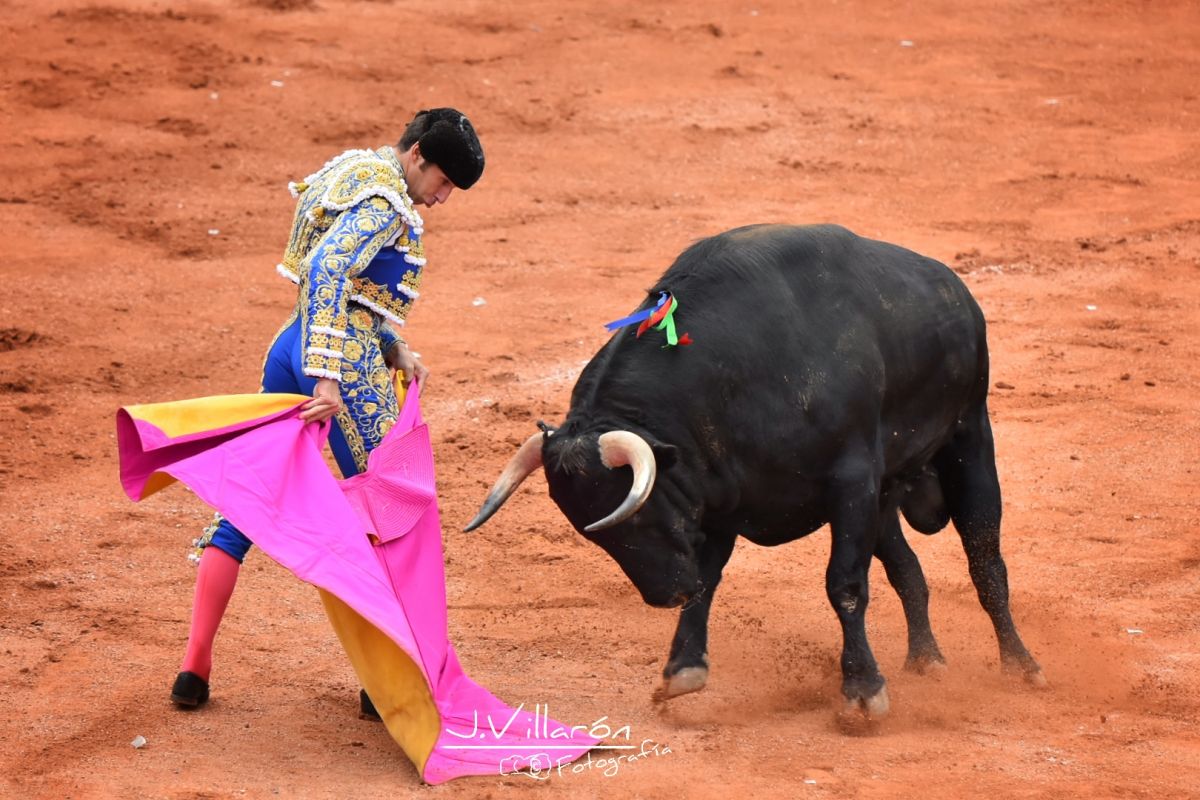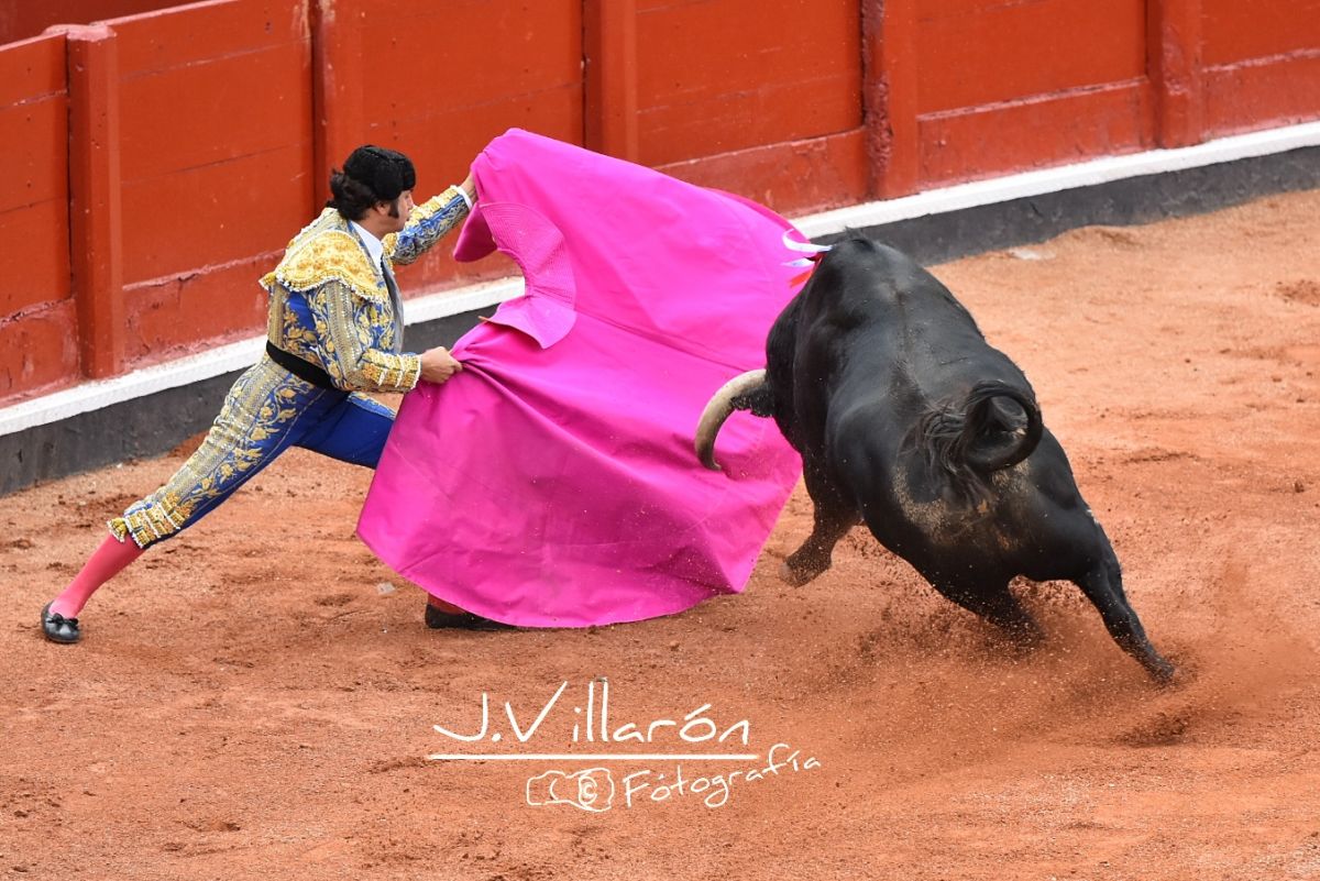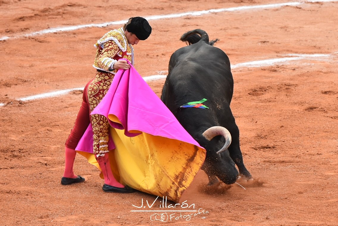 De entrada muestra poca fijeza en el capote y es por ello que Julián comienza el recibo capotero sacándolo a los medios con esbeltas verónicas y rematando con una media que hace que el público vaya entrando en ambiente.